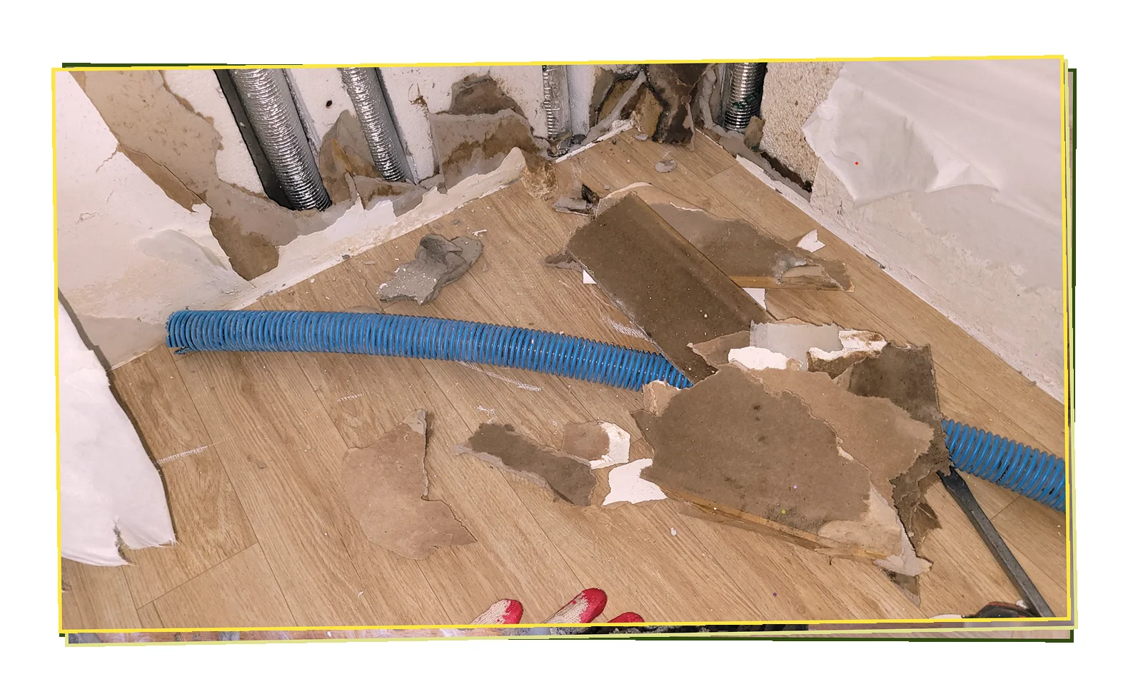 장안2동에서 자주 발생하는 누수 유형: 온돌 바닥 난방 배관에서 온수가 새는 심각한 상황. 이러한 문제는 방치 시 더 큰 피해로 이어질 수 있습니다.
